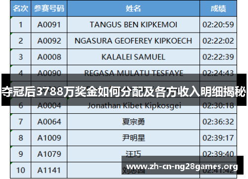 夺冠后3788万奖金如何分配及各方收入明细揭秘